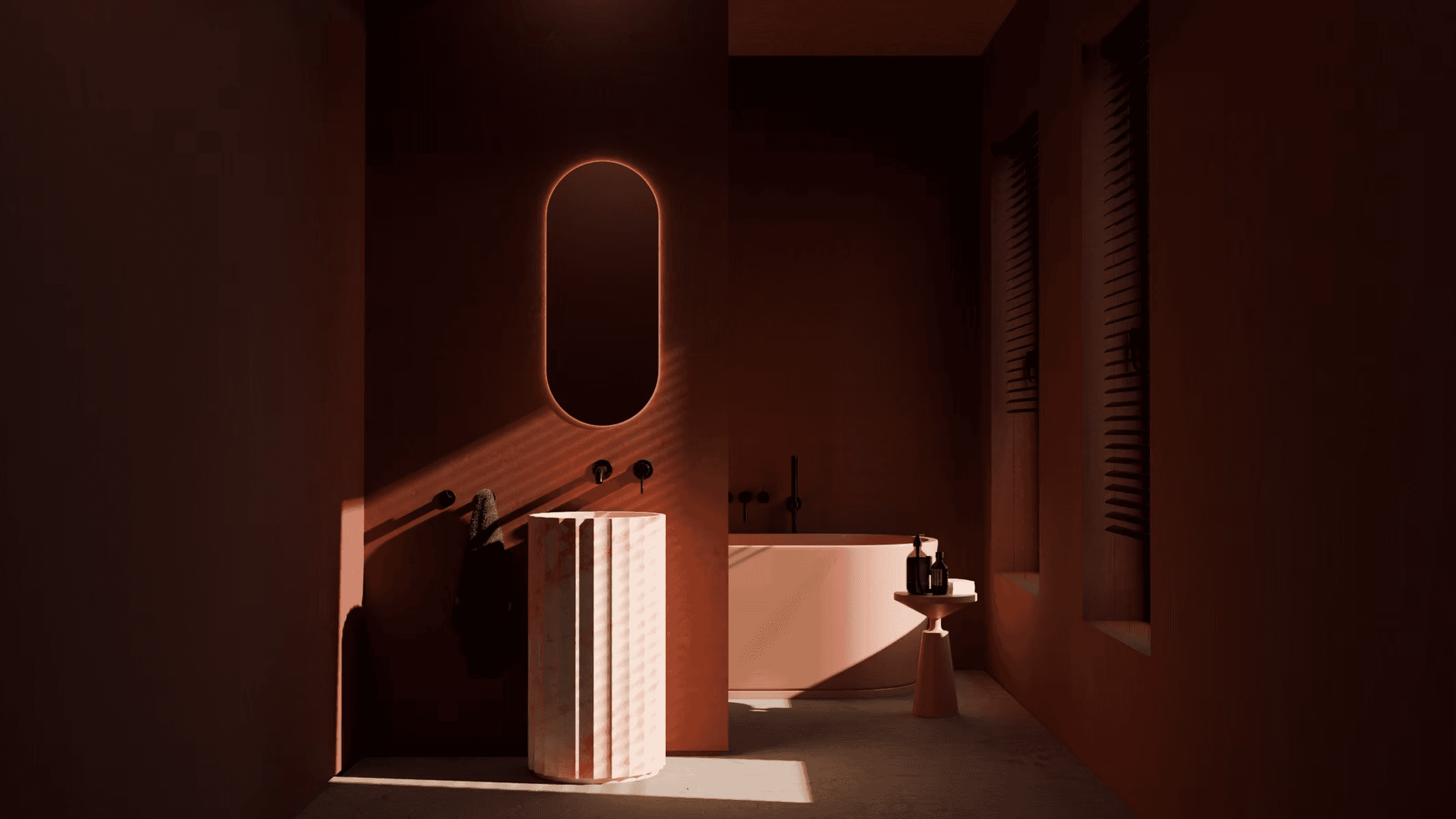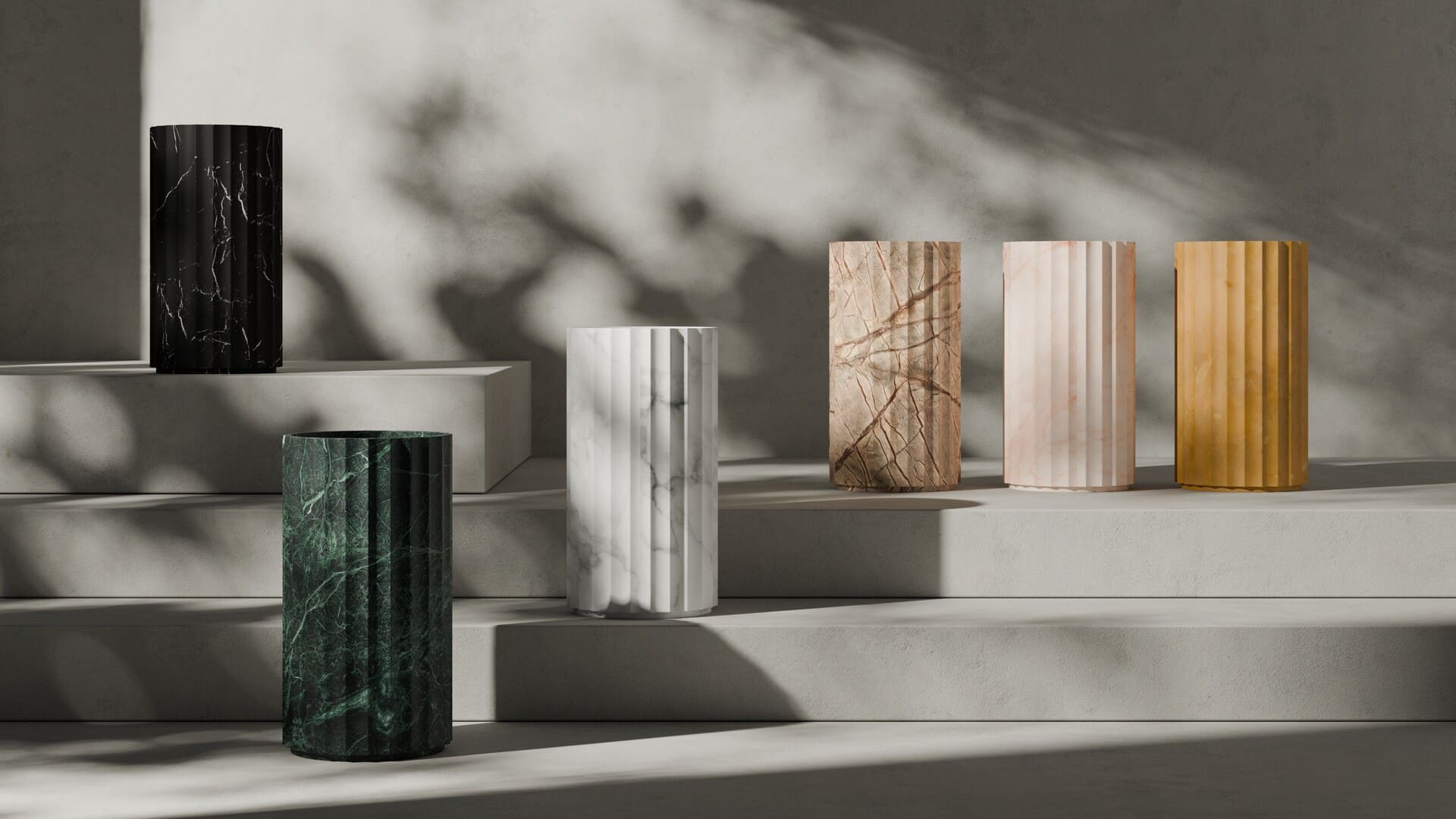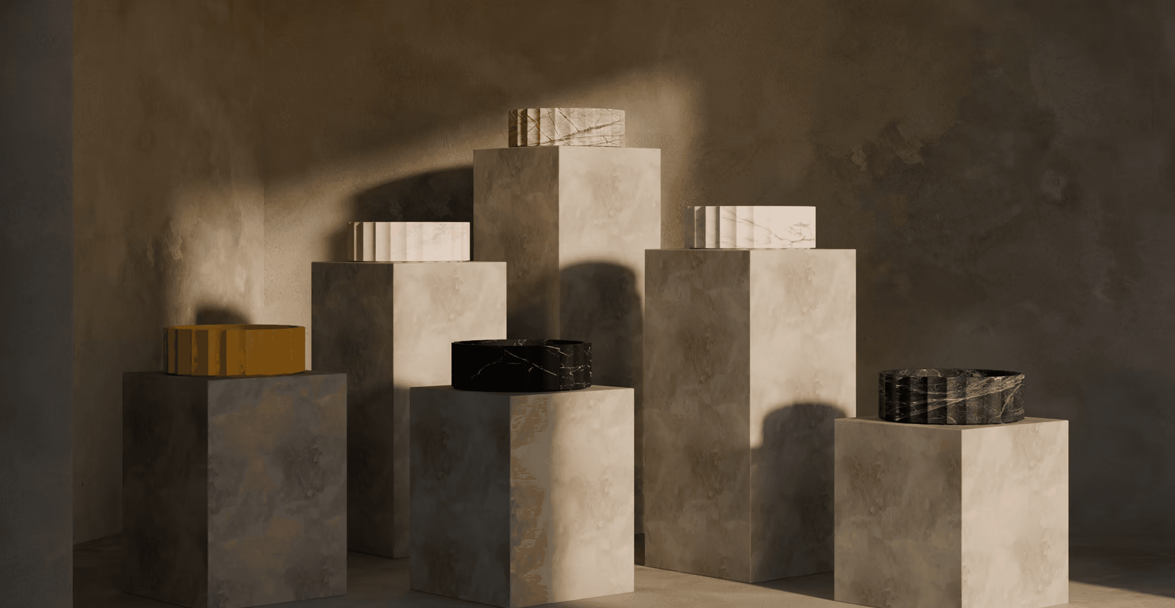 We craft sculptural vessels and column-like forms that function as basins; objects of daily use elevated into pieces of functional art.