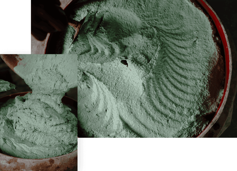 The raw is transformed through rhythm. Water meets powder, pigments seep into white, and marble chips disperse into the body of the paste. Mixing is tactile: the hand feels when the blend is too coarse, too dry, or just right. It is not simply chemistry, but an instinct honed over time, when to fold, when to pause, when the material is ready to move forward.