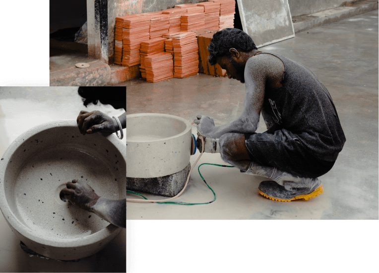 Every vessel begins not with form but with fragments. Cement, marble chips, pigments, each is chosen with care, sourced for its strength, tone, and character. Procurement is not simply supply; it is selection, a deliberate act of bringing together elements that will one day hold water, light, and space. Each particle carries within it a future of resilience, endurance, and beauty.